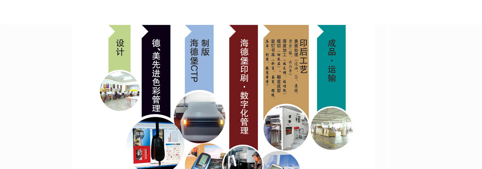 公司傾力引進(jìn)先進(jìn)技術(shù)、設(shè)備與工藝,不斷擴(kuò)充生產(chǎn)能力,提高產(chǎn)品質(zhì)量和開(kāi)發(fā)先進(jìn)工藝?,F(xiàn)有當(dāng)今世界先進(jìn)的德國(guó)進(jìn)口海德堡多色印刷機(jī)四臺(tái)/北人2108單色機(jī)一臺(tái)/單色六開(kāi)印刷打碼機(jī)兩臺(tái)/德國(guó)海德堡CTP數(shù)碼制版系統(tǒng)/全自動(dòng)覆膜機(jī)/全自動(dòng)模切機(jī)/全自動(dòng)燙金機(jī)多臺(tái)/UV上光機(jī)/紙面壓光機(jī)/全自動(dòng)裱瓦機(jī)/全自動(dòng)騎馬釘聯(lián)動(dòng)線/全自動(dòng)配頁(yè)機(jī)/橢圓膠訂機(jī)/折頁(yè)機(jī)多臺(tái)/高速裁切機(jī)多臺(tái)/高速鎖線機(jī)多臺(tái)/全自動(dòng)高速糊盒機(jī)/十余臺(tái)精裝書(shū)刊配套設(shè)備/十余臺(tái)掛歷、臺(tái)歷流水線設(shè)備等。