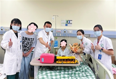 出院前,小欣和媽媽給醫(yī)護(hù)送鮮花。 通訊員供圖
