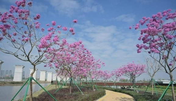 紫花風(fēng)鈴木、美麗異木棉……中山這些公園花開正好,快去打卡