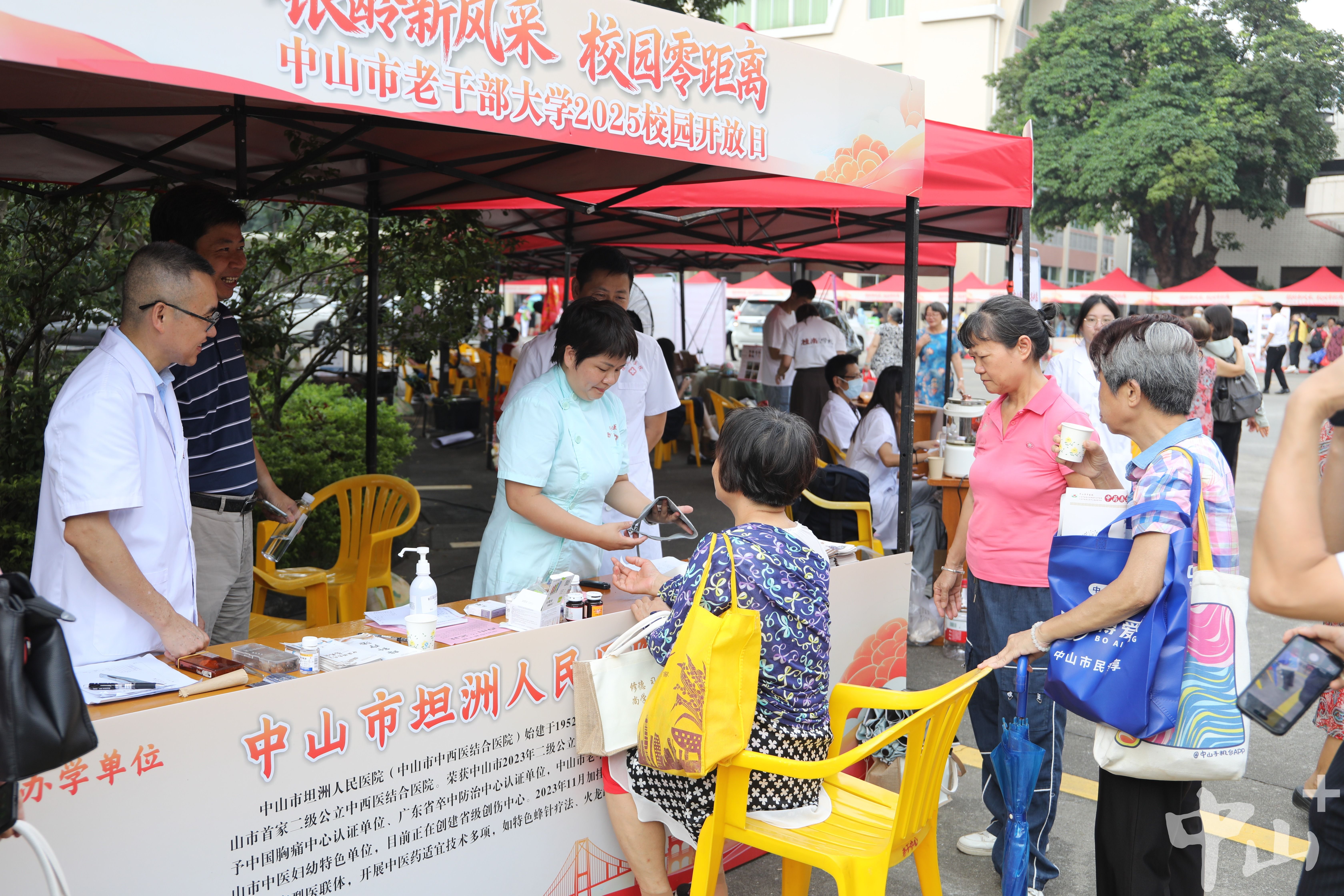 活動(dòng)現(xiàn)場,辦學(xué)成果展、學(xué)員作品展以及27個(gè)參展攤位吸引了參觀者的關(guān)注。辦學(xué)成果展以圖文形式展示了老干部大學(xué)在課程創(chuàng)新、教學(xué)管理、學(xué)員風(fēng)采等方面的豐碩成果;書畫、攝影、蘭花等作品展,展示了學(xué)員們的特長和愛好;協(xié)會社團(tuán)以及志愿服務(wù)專區(qū)生動(dòng)展現(xiàn)了校園文化的豐富多彩。此外,中山市中醫(yī)院、沙溪理工學(xué)校、中山市美容美發(fā)協(xié)會、咀香園健康食品有限公司等老年教育發(fā)展聯(lián)盟單位及支持單位也設(shè)攤展示,彰顯社會各界支持老年教育、參與銀齡事業(yè)的生動(dòng)圖景。