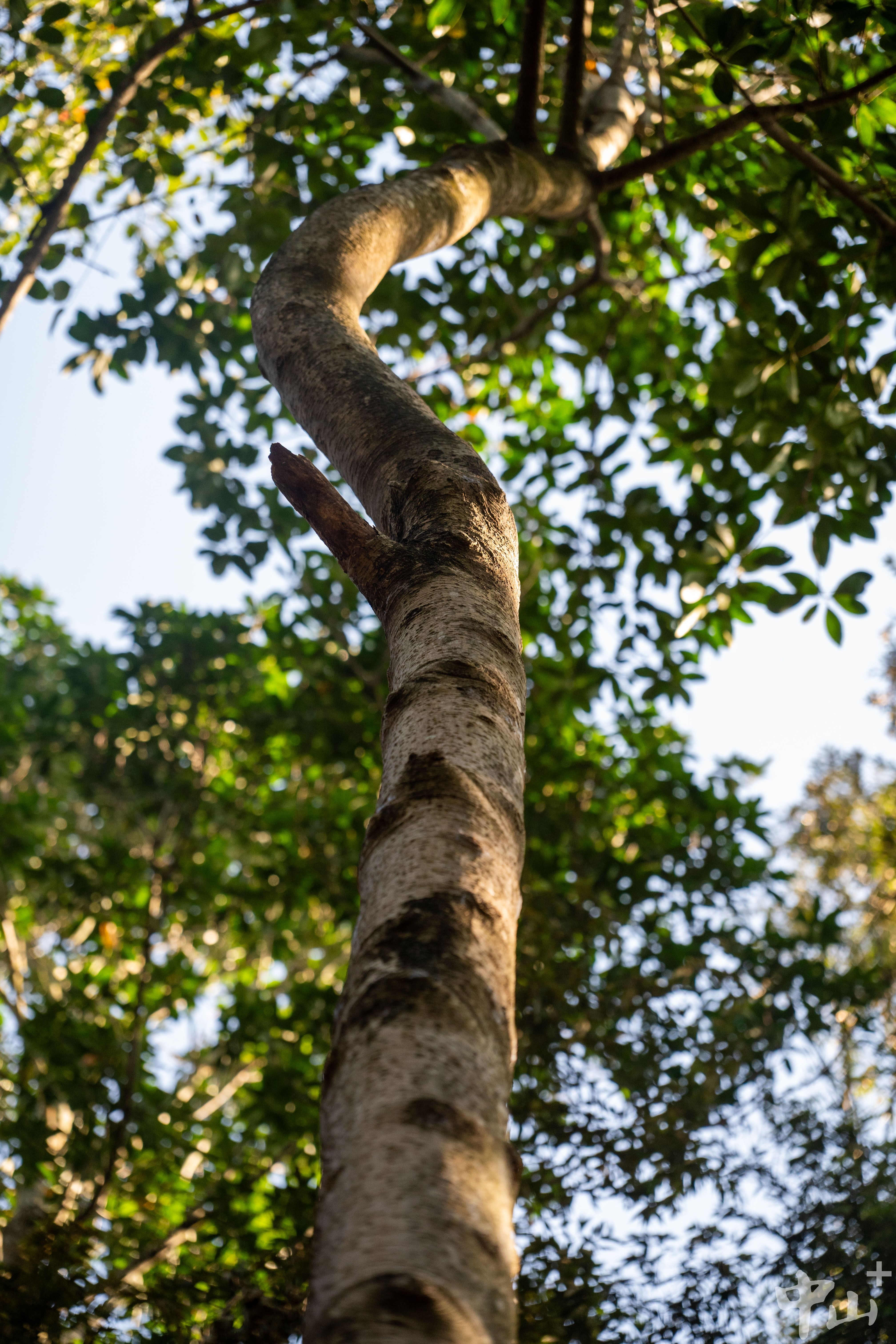 現(xiàn)場(chǎng)可以看到,試點(diǎn)范圍內(nèi)一棵胸徑約40厘米的紅錐樹周圍已經(jīng)清理出平坦的空地,整片樹林看上去也較為疏朗?!耙话銇碚f,如果想要長(zhǎng)成胸徑一米的大樹,樹冠覆蓋的范圍直徑大約有十幾米,但是撫育前這棵樹和旁邊的樹只間隔了兩三米,不利于長(zhǎng)成大樹?!惫茏o(hù)中心高級(jí)工程師王家彬說。