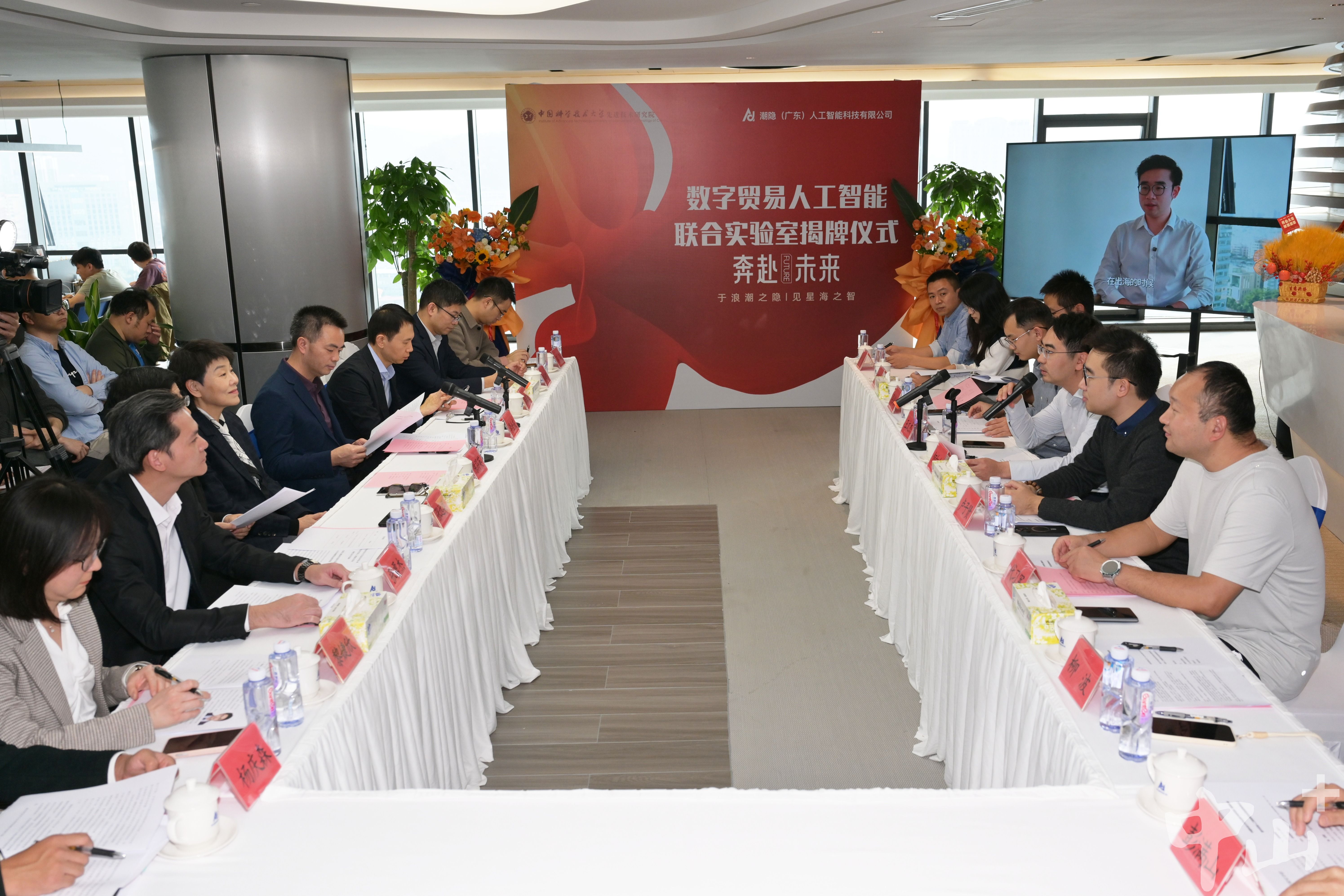 12月18日,中國科學(xué)技術(shù)大學(xué)先進技術(shù)研究院與潮隱(廣東)人工智能科技有限公司(以下簡稱“潮隱科技”)共建的“數(shù)字貿(mào)易人工智能聯(lián)合實驗室”正式揭牌。揭牌儀式后,企業(yè)、校方與政府代表還圍繞“AI如何更深入賦能跨境電商產(chǎn)業(yè)”舉行了專題座談。