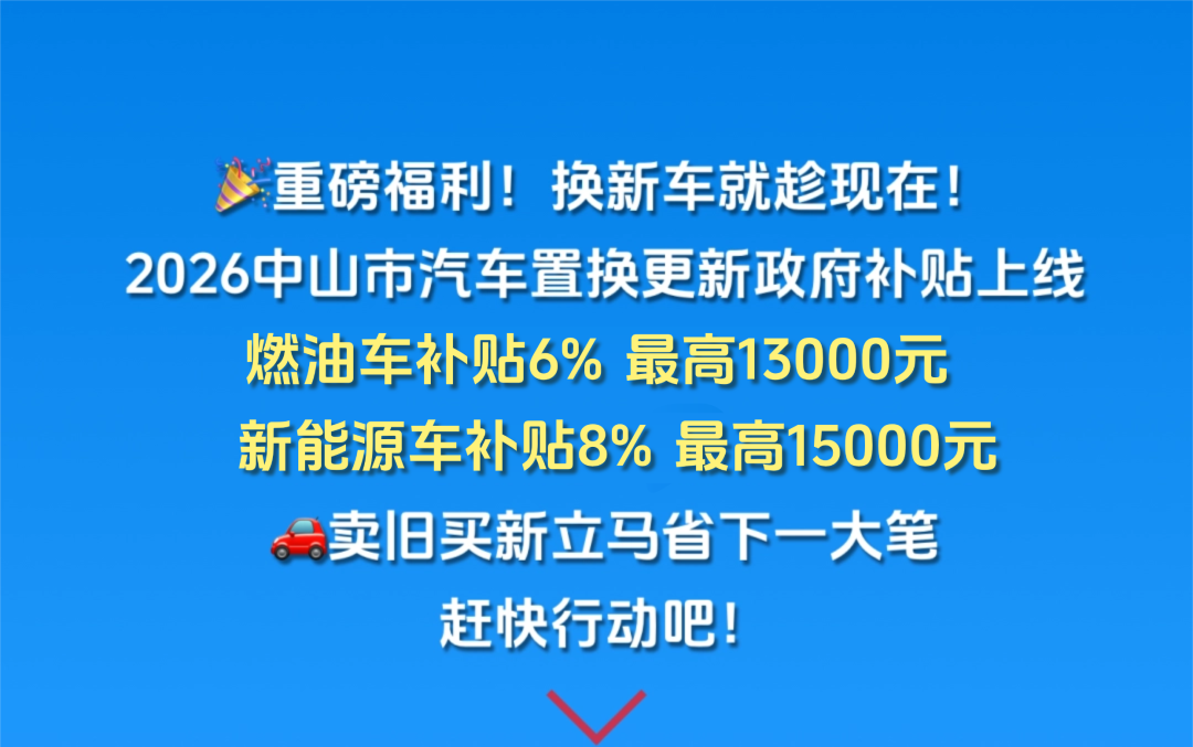 最高省1.5萬元!中山汽車置換更新補(bǔ)貼上線