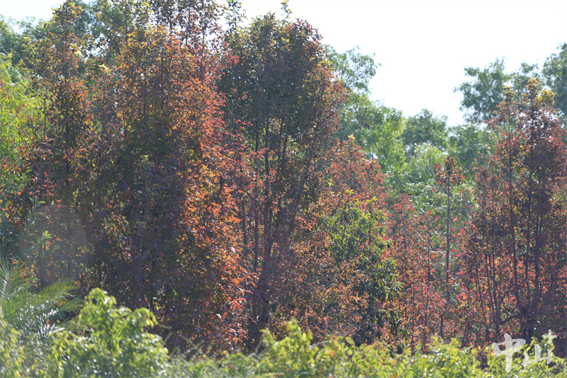 ▲公園里紅葉似火的楓香樹(shù)林。