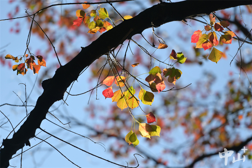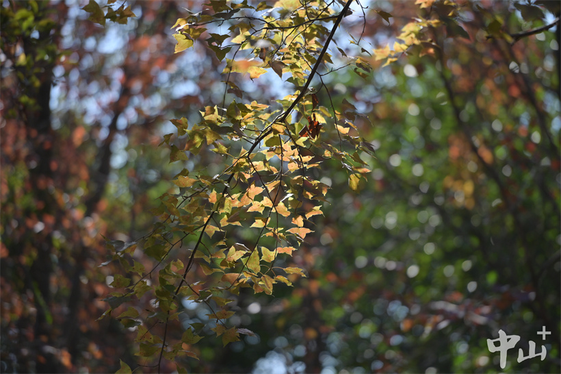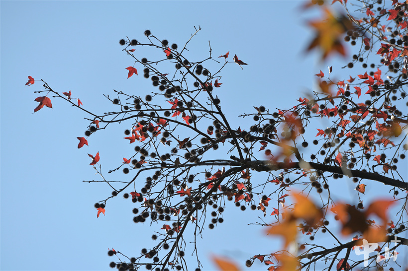 ▲楓香樹(shù)色彩斑斕的葉子渲染出濃濃“秋意”。