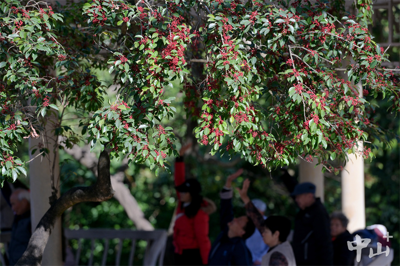 1月8日,天氣晴朗,中山冬天的紫馬嶺公園,宛如一幅絢麗的“秋日畫(huà)卷”。公園里楓香樹(shù)的葉子紅得明艷奪目,一片片紅葉在枝頭搖曳,與周邊的綠樹(shù)交相輝映。烏桕樹(shù)的葉子五彩斑斕,有的深紅如炭火,有的橘黃似暖陽(yáng),還有的粉綠相間,在陽(yáng)光的映照下,仿佛是大自然打翻了調(diào)色盤(pán)。冬青樹(shù)則掛滿了紅彤彤的果實(shí),如同一串串喜慶的小燈籠,在翠綠葉子的襯托下格外耀眼。陽(yáng)光灑在公園的每個(gè)角落,市民游客紛紛來(lái)到這里,曬著暖陽(yáng),享受悠閑的時(shí)光,觀賞這道獨(dú)特的冬日 “秋色”風(fēng)景。