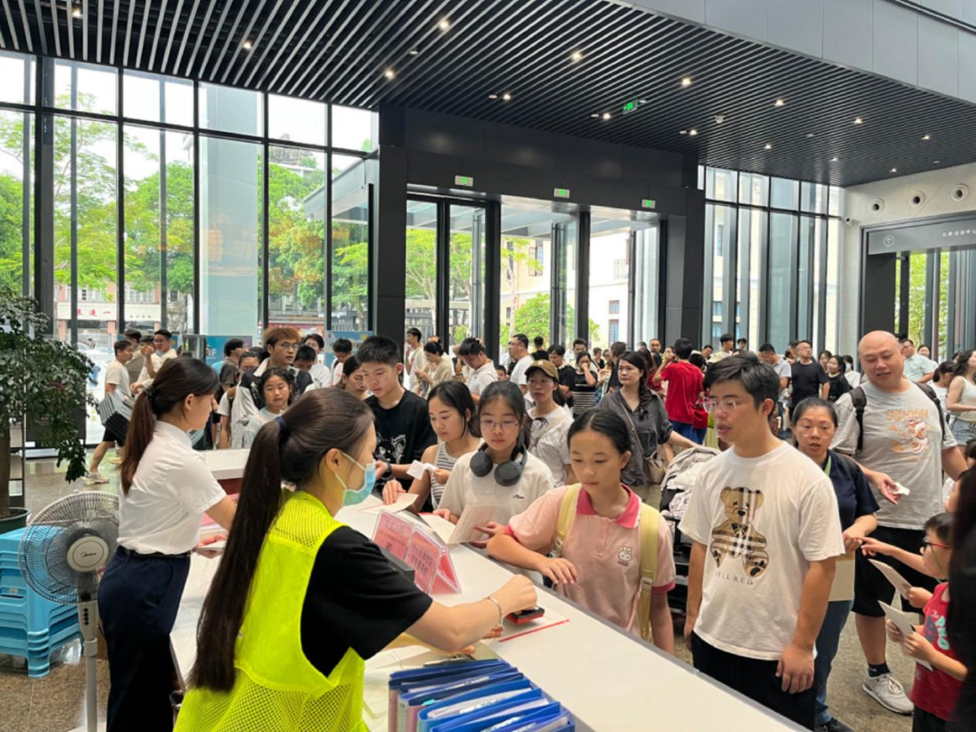 市博物館設(shè)立黨員志愿服務(wù)崗,以暖心服務(wù)應(yīng)對深中通道開通后的參觀熱潮。圖為黨員志愿者為游客提供導(dǎo)覽與蓋章服務(wù)。
