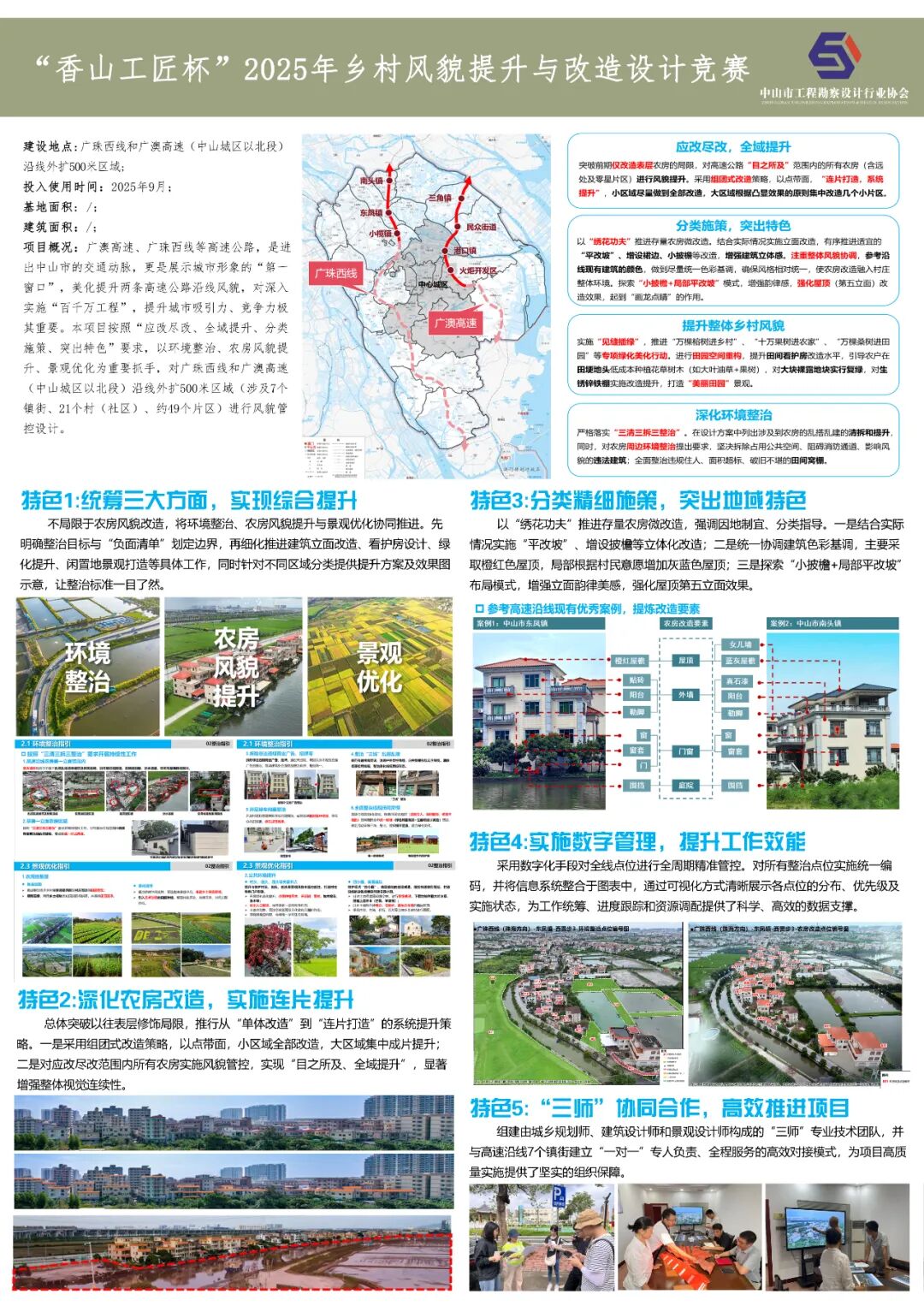本次競賽是“香山工匠杯”品牌首次聚焦鄉(xiāng)村建設領域,是工會組織服務“百千萬工程”的重要實踐,旨在推動設計單位與鎮(zhèn)街、村(社區(qū))深化對接,打造一批可復制、可推廣的鄉(xiāng)村風貌提升“中山樣本”,讓工匠精神深植鄉(xiāng)村沃土,在涉農(nóng)村居的廣闊天地中錘煉技藝,爭當鄉(xiāng)村建設的生力軍。推動工會服務緊跟鄉(xiāng)村振興步伐,通過勞動競賽、技術比武等多種形式培育鄉(xiāng)村建設人才。