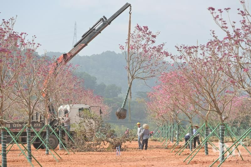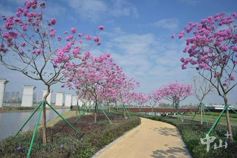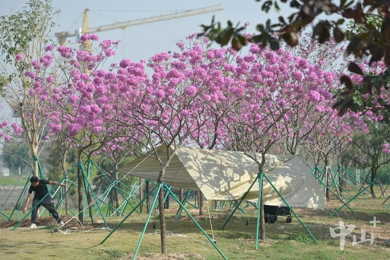 在中山人才公園,一片新植的紫花風鈴木已悄然盛開,沿步道兩側(cè)形成一條溫柔的“花廊”。正在拍照的市民何女士欣喜地說:“今天本來是隨意走走,沒想到遇上這么漂亮的花!”據(jù)了解,這60株紫花風鈴木是今年5月“我為中山種棵樹”活動中種下的,如今迎來了它們在中山的首次盛放。紫花風鈴木開花為一年一期,花期只有二三十天,眼下正值最佳觀賞期。