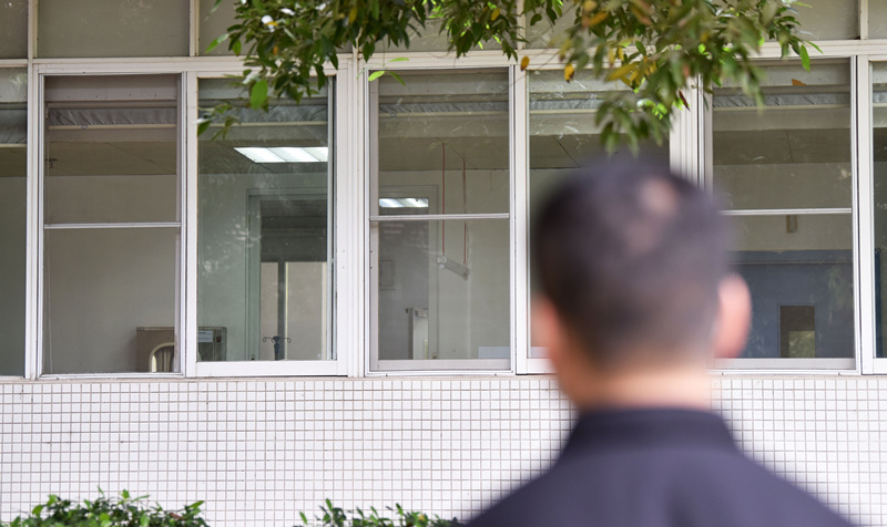 她在隔離區(qū)的走廓內(nèi),他在幾米外的草坪上。撥通手機,視頻中的她在笑;他想哭 ,卻堅強地?fù)]了揮手。