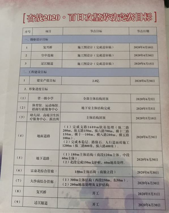 據(jù)介紹,市民最關(guān)注的省一級(jí)小學(xué),將在6月5日全部主體結(jié)構(gòu)封頂;幼兒園、派出所將在5月10日主體結(jié)構(gòu)封頂;復(fù)興橋、過(guò)江隧道等將在5月31日起動(dòng)工。