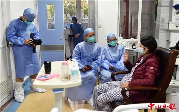 “我最開心的時(shí)候,就是她睜開眼睛的時(shí)候。一開始,她身上插滿管子,狀態(tài)比較差。后來(lái)進(jìn)入康復(fù)期,每天都有很大的變化,就像看著一個(gè)小嬰兒一樣變化,奔著希望往前走?!敝猩绞行鹿诜窝字匕Y救治團(tuán)隊(duì)成員、中山市第二人民醫(yī)院重癥監(jiān)護(hù)科(兼公共衛(wèi)生應(yīng)急病區(qū))護(hù)士長(zhǎng)孫福寧告訴記者,這段時(shí)間,他們和彭女士就像家人一樣??吹剿梢噪x開醫(yī)院和家人團(tuán)聚了,他們都非常激動(dòng)。