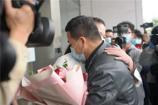 3月31日下午3時(shí)30分,已經(jīng)治愈的中山危重癥產(chǎn)婦彭女士在結(jié)束了14天的隔離觀察之后,終于可以回家和家人團(tuán)聚了。