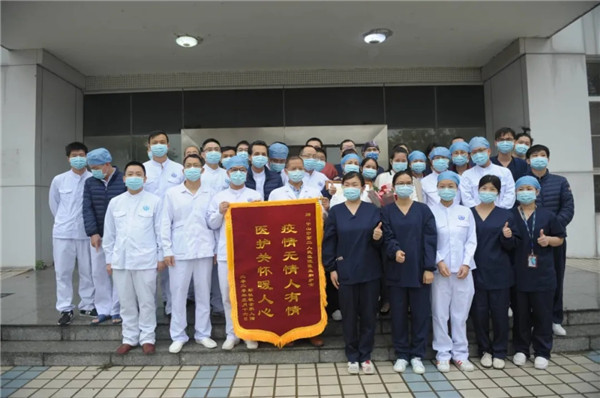 彭女士與與醫(yī)護(hù)人員合影。 記者 文波 攝