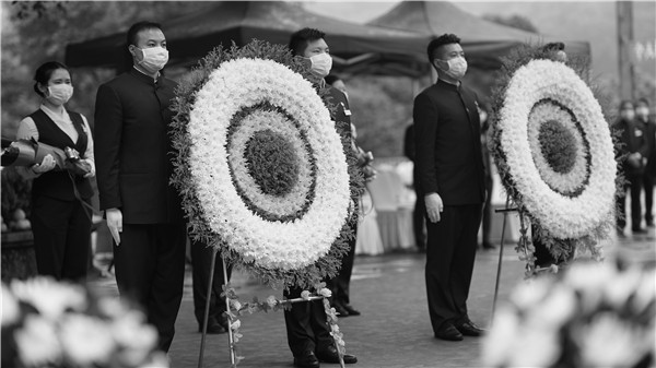 隨后,禮儀人員為逝者三鞠躬,伴隨著低沉的音樂,現(xiàn)場沉浸在對逝者的深切緬懷中。
