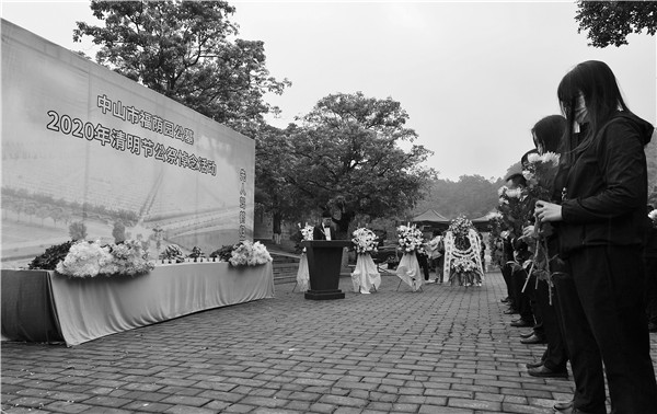“今年受疫情影響,我市根據(jù)疫情防控的需要,暫停了所有殯葬場所的現(xiàn)場祭掃活動,但考慮到市民有寄托哀思、緬懷先人的需求,市政府、市民政局除了呼吁市民通過網(wǎng)絡(luò)祭掃、居家祭掃外,市殯儀館、市福蔭園還分別舉行了簡單不失莊重的公祭儀式,通過這樣的方式代群眾向先人表達(dá)緬懷之情?!笔忻裾指本珠L高可攀如是說,公祭儀式還通過中山市民政局官方微信直播到千家萬戶。