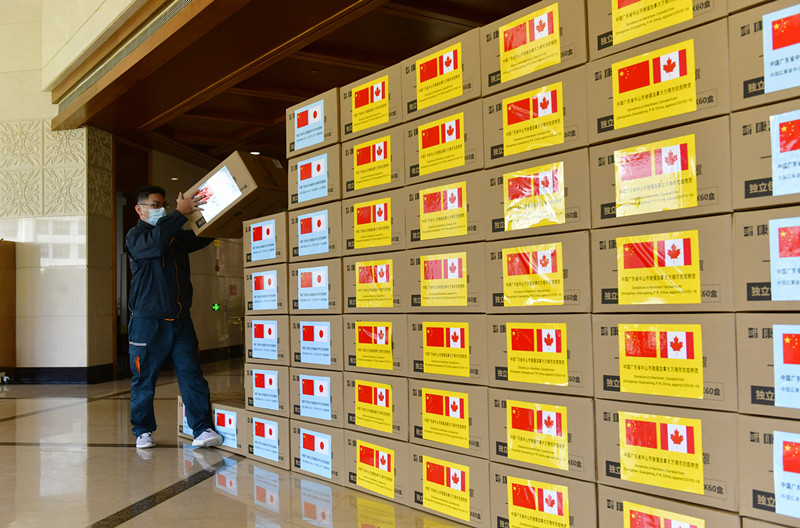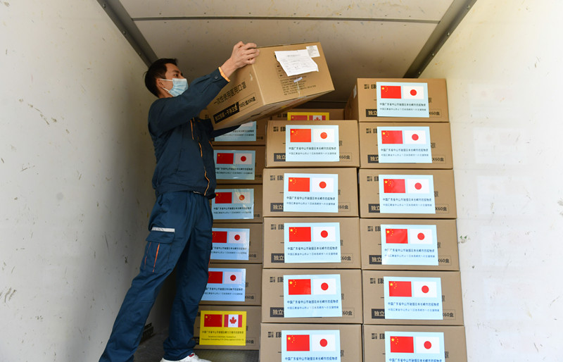 4月12日上午,5萬(wàn)個(gè)一次性醫(yī)用口罩在市政府會(huì)議中心“集結(jié)”,它們承載著中山對(duì)國(guó)際友城的關(guān)切與友誼,即將寄往日本守口市、長(zhǎng)崎市、加拿大萬(wàn)錦市,馳援當(dāng)?shù)卣兔癖姷姆酪吖ぷ鳌?/p>
