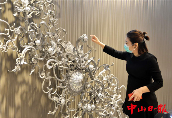 在華藝廣場9樓的“燈飾文化綜合展廳”,華藝廣場總經(jīng)理丁瑜展示了廣場內(nèi)文化推廣的功能。展廳入口處,擺放著設(shè)計師以燈飾為元素創(chuàng)造的藝術(shù)裝置,各類燈飾配件“組合”,象征著燈都古鎮(zhèn)的產(chǎn)業(yè)基礎(chǔ)和文化內(nèi)涵。