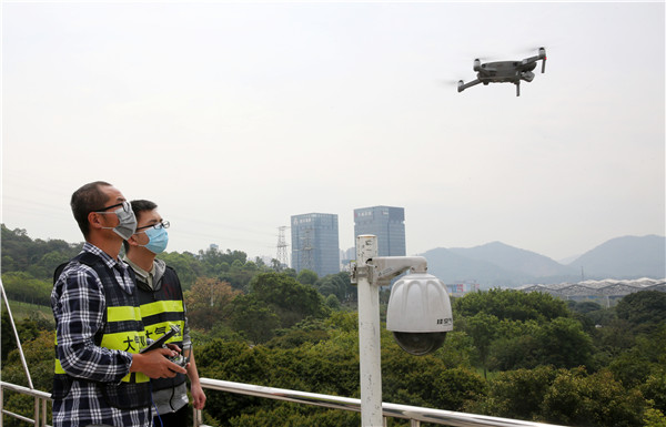 10時(shí)15分開(kāi)始,無(wú)人機(jī)操控人員開(kāi)始做飛行前準(zhǔn)備。操作人員介紹,此次飛行將進(jìn)行約90分鐘,中間將更換3次電池。無(wú)人機(jī)飛行設(shè)定了自動(dòng)飛行模式,將對(duì)重點(diǎn)區(qū)域、違法現(xiàn)象進(jìn)行自動(dòng)抓拍。