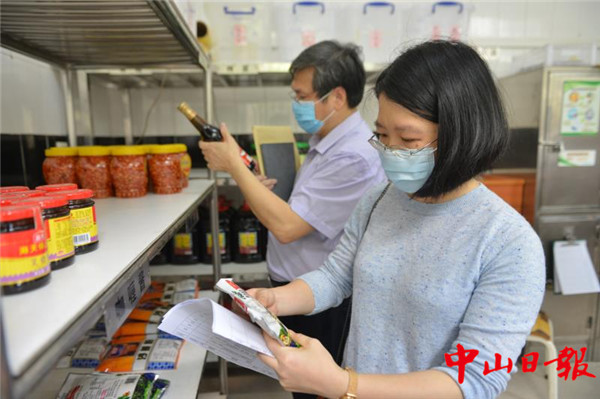 食物安全方面,記者在該校小學(xué)餐廳食品倉庫看到,食品供應(yīng)商的營業(yè)執(zhí)照和相關(guān)證明直接掛在墻上。檢查組一一檢查食品的保質(zhì)期,以保證學(xué)生復(fù)學(xué)時(shí)的食品安全。