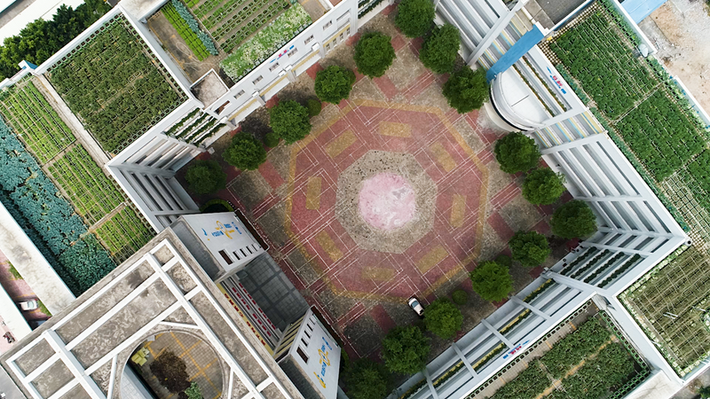 而教學(xué)樓的天臺則別有洞天,紫色的茄子,翠綠的蔬菜,隱藏在屋頂?shù)牟藞@不僅美觀,還承擔(dān)著隔熱的重要作用,燦爛的陽光下、輕柔的微風(fēng)中,這片景色讓人心曠神怡。