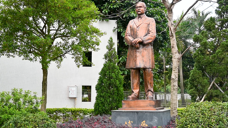 學(xué)校擁有孫中山文化普及教育基地,體育館的一側(cè)便是孫中山先生的塑像,“立志,要有國民大志氣,專心做一件事,幫助國家變成富強(qiáng)?!钡慕陶d不僅記錄在校園中,也銘刻在大家的心上.