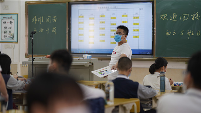 上午7點(diǎn)45分,市一中初三16個(gè)班級(jí)、800多名學(xué)生,開始分批錯(cuò)峰返校。