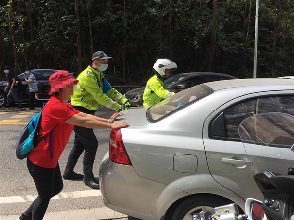 10點(diǎn)15分,正當(dāng)游客到達(dá)高峰時,蔡錫銳從長長的車龍中,注意到一輛開著雙閃燈,不停按喇叭的銀灰色小轎車。他立即上前詢問司機(jī),得知車內(nèi)有一名危重病人,急需前往南朗的第三人民醫(yī)院醫(yī)治。不想從三鄉(xiāng)前往醫(yī)院的途中,在田心公園門口遇到了堵車。