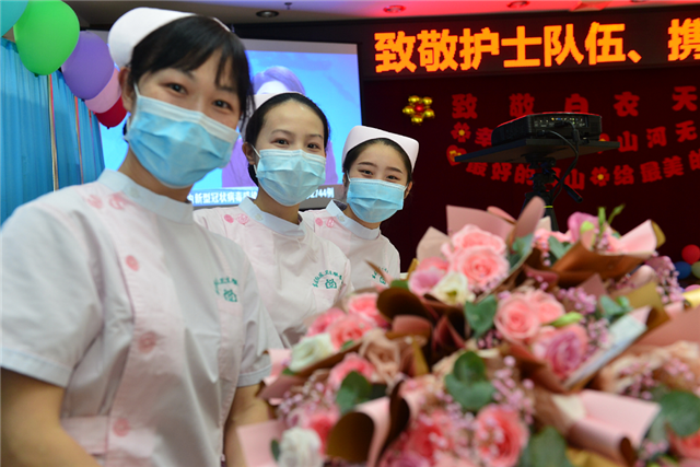 “您們辛苦了,節(jié)日快樂(lè)?!?月12日下午,為迎接一年一度的國(guó)際護(hù)士節(jié),東區(qū)桃苑社區(qū)組織志愿者們來(lái)到東區(qū)社區(qū)衛(wèi)生服務(wù)中心,為在崗的70多名護(hù)士送上鮮花、糖水和蛋糕,表達(dá)對(duì)白衣天使們的敬意。