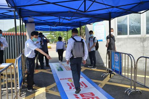 5月18日,我市即將第三批返校的學(xué)生包括了中職、技校和小學(xué)4—6年級(jí)學(xué)生。今日上午,中山市中等專業(yè)學(xué)校進(jìn)行了返校前的演練。老師們穿上校服,拖著行李,模擬學(xué)生返校過程,如何測(cè)體溫、遇到發(fā)熱情況如何處理等。