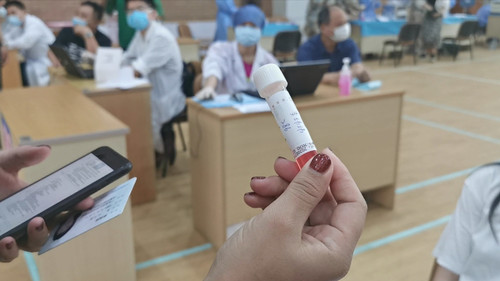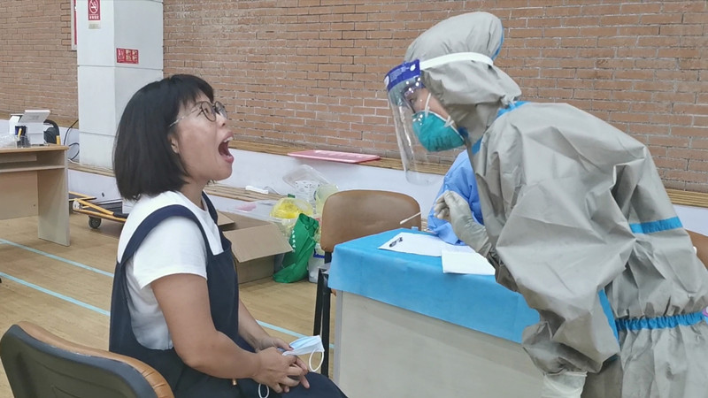 對于每一個接受檢測的人員來說,檢測過程流暢、迅速,前后不過5分鐘,而對于幾十位堅守在這里的醫(yī)護防疫人員來說,他們穿著防護服、護目鏡、兩層口罩等,已經(jīng)在這里工作了整整一天。