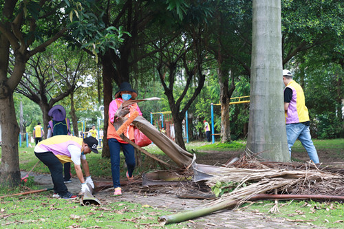 隨著隊伍一路向陽光半島方向前進(jìn),生活垃圾逐漸減少,除了公園綠化帶上的落葉、煙頭與紙巾等物,供周邊居民散步騎行的綠道上幾乎看不到垃圾?!捌鋵嵾@些年在志愿者們的影響下,公園的環(huán)境已經(jīng)比過去好了很多,平時散步的時候心情也舒暢了不少。”志愿者楊女士說。作為水岸花都小區(qū)的住戶以及義工,她既是環(huán)境變化的見證者,也是凈化行動的實施者,只要有空閑時間,她和義工隊友們便會參加類似的志愿活動,為打造文明衛(wèi)生的生活環(huán)境出一份力。