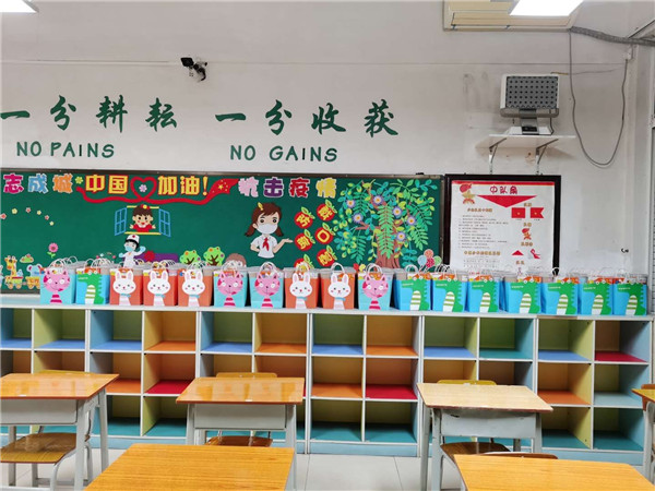 當(dāng)天,該校低年級段每個班的老師們,準(zhǔn)備了一個個禮品袋作為返校見面禮。該校二年級(3)班教室內(nèi),白板上寫著溫馨的歡迎語和詳細(xì)的安全提示。教室后排書包柜上,整齊擺放著50個禮品袋,每個禮品袋里都裝有5份小禮物——DIY開心農(nóng)場小植物,親子雙人機(jī),九套連環(huán)智力圈,卡通電子表,網(wǎng)紅搖頭小黃人表情包。該班班主任韋玉蘭老師介紹說,疫情期間,孩子們在家上了幾個月網(wǎng)課后終于迎來的返校重逢這一刻。為了讓孩子們感受到校園的溫馨,班級的溫馨,消除學(xué)生返校既激動又緊張心理,特意給孩子們準(zhǔn)備了驚喜,讓他們輕松度過返校過渡期,順利適應(yīng)校園的學(xué)習(xí)和生活。