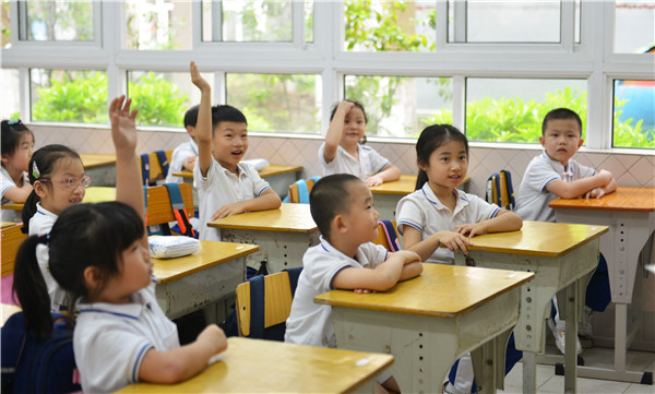 在門口排隊(duì)測量體溫,排隊(duì)洗手后,“小神獸”們陸續(xù)走進(jìn)教室。記者在該校一年級教室外看到,學(xué)生們進(jìn)入教室后,便迫不及待和同學(xué)、老師分享假期心得。