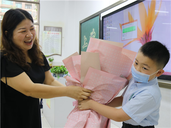 西區(qū)鐵城小學(xué):學(xué)生有禮物 老師有鮮花