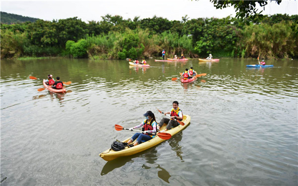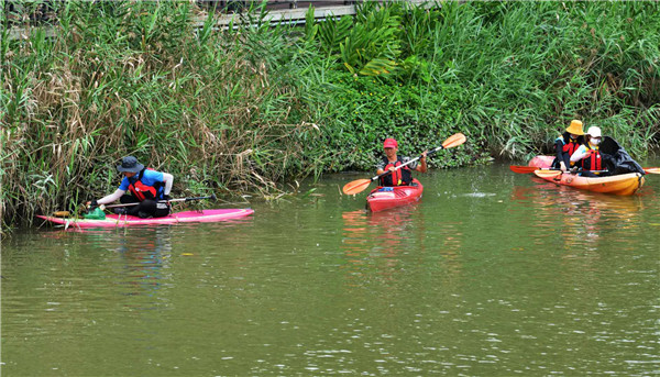 當(dāng)日上午,岐江之友皮劃艇的專業(yè)老師首先為大家講解巡河理論知識(shí)、乘坐皮劃艇的技能訓(xùn)練及應(yīng)急救援知識(shí)。在普及相關(guān)知識(shí)和注意事項(xiàng)后,“河小青”們穿好救生衣,拿起打撈裝備,井然有序下船,在南區(qū)北溪河開始5公里的巡河護(hù)河活動(dòng)。他們相互配合,聯(lián)合作戰(zhàn),共同打撈清理河道岸邊漂浮物、垃圾,近距離察看河體水質(zhì),及時(shí)發(fā)現(xiàn)并解決存在的問題。