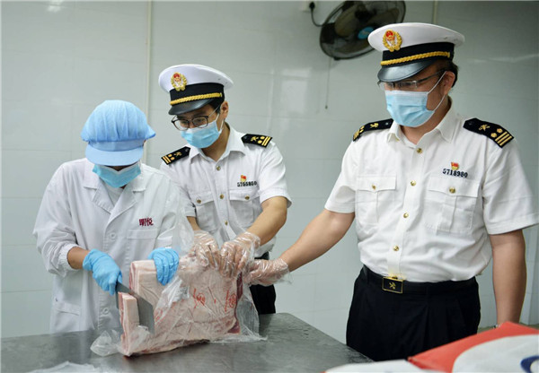 據中山海關介紹,傳統蘆兜粽和咸肉粽,因含豬肉成分,為高風險敏感商品。為確保出口粽子質量安全,中山海關嚴格源頭管理,督促生產企業(yè)提高食品安全主體意識,加強對糯米、豬肉、蛋黃、糖油、添加劑等原輔料的驗收,以及微生物、農獸藥殘、重金屬等安全衛(wèi)生項目的自檢自測;注重對企業(yè)的現場檢查,指導原料運輸存放、生產加工、體系管理及成品檢驗等,重點核查豬肉來源的合法性,做好非洲豬瘟病毒核酸監(jiān)測,確保質量安全。