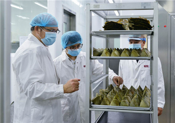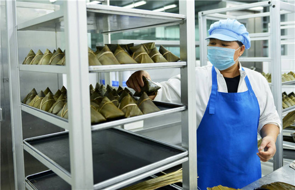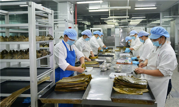 “我們嚴把原料關?!惫鞠嚓P負責人說,蘆兜葉經過初步處理后,還要經過殺青、曬干、浸泡、成型等六七道工序才使用,豬肉要挑肥瘦適中的部位,瑤柱用60頭的規(guī)格,米要用上好的香米,一系列的選材是為了從源頭上確保用料的安全。