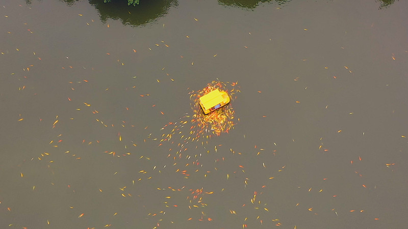 移步至摩崖園,園內(nèi)假山疊翠,繁花吐蕊,游魚嬉戲,讓人流連其中。繼續(xù)往前,有許多市民在此泛舟喂魚,觀賞湖景,可感微風(fēng)拂面,綠柳輕揚(yáng)。
