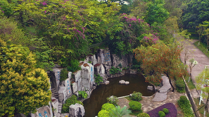 夏日,觀音石像附近的荷花池,盛放的朵朵荷花掩映在青綠的荷葉間,場(chǎng)面像極了印象畫派創(chuàng)始人莫奈的《睡蓮》,微風(fēng)輕過(guò)散發(fā)著陣陣荷花清香,令人心曠神怡。荔枝林里,荔枝已染上紅色,行走其中,一股微微的荔枝甜香味圍繞著身邊。