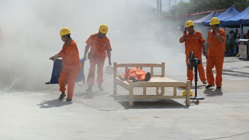 6月18日,位于板芙鎮(zhèn)城南六路的中鐵十五局集團(tuán)105國道改建工程拌合站內(nèi)響起一陣急促的警鈴聲,現(xiàn)場冒出濃煙,火災(zāi)現(xiàn)場有一名人員被困。如此逼真的事故現(xiàn)場并非真實發(fā)生了火災(zāi),而是正在進(jìn)行交通工程綜合應(yīng)急救援演練。