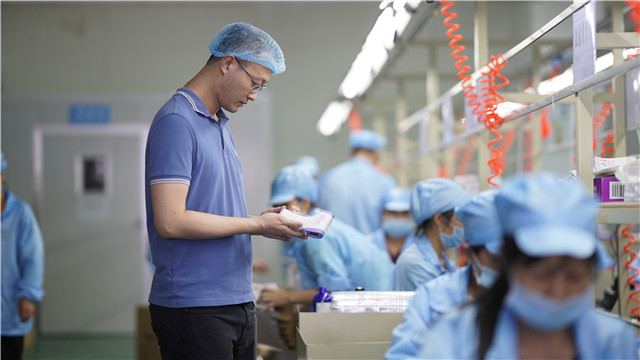 “2月10日之后,我每天最少要接200個(gè)電話,一個(gè)電話打超過10分鐘,就會(huì)有超過15個(gè)未接來電。”金利電子負(fù)責(zé)人梁成杰描述當(dāng)時(shí)的忙碌狀態(tài),這些密集的電話,來自各地的采購(gòu)客戶,目標(biāo)是采購(gòu)該企業(yè)生產(chǎn)的額溫槍。在其生產(chǎn)車間里,工人們?cè)谏a(chǎn)線上忙碌著,一把把額溫槍在流水線上組裝完畢。