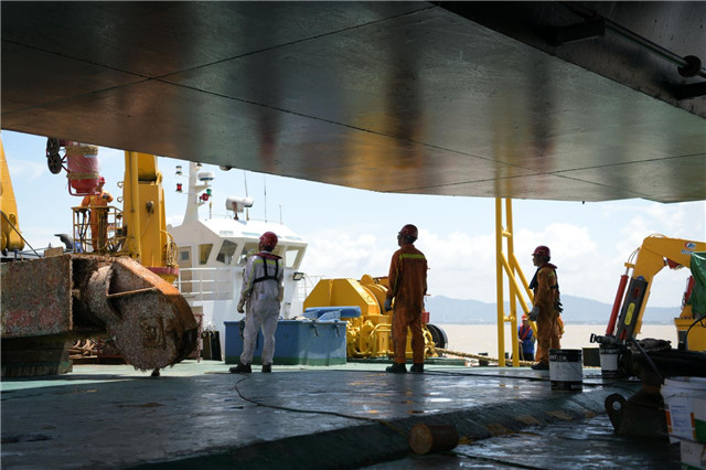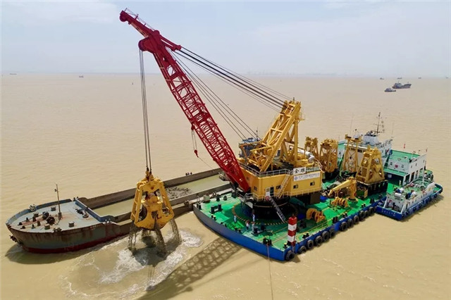 去年3月底,“金建”輪在深中通道E7管節(jié)完成深水深槽“第一鑿”;去年7月底,與“金雄”輪一同完成E7-E8管節(jié)段巖石精挖任務(wù),為深中通道沉管隧道施工掃除了第一道“攔路石”;目前在E15-E16管節(jié)海域執(zhí)行施工任務(wù)。