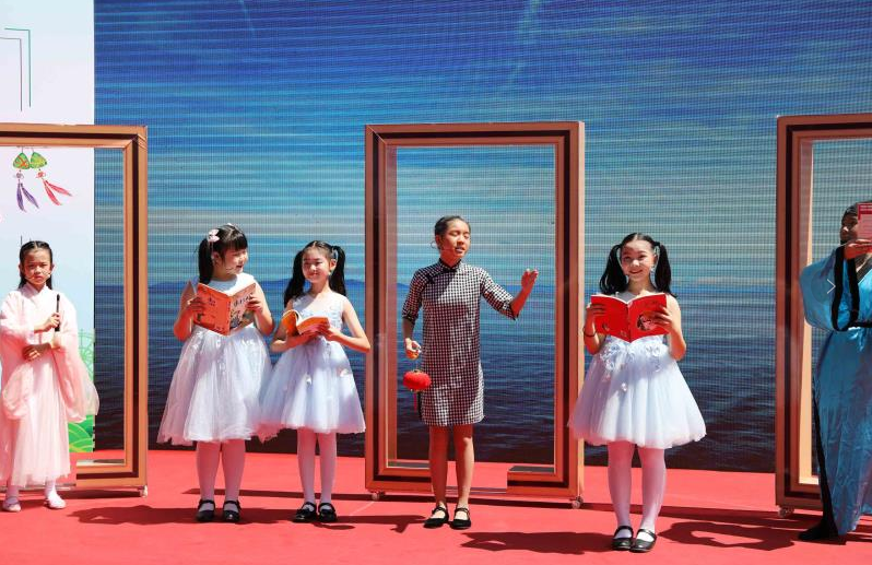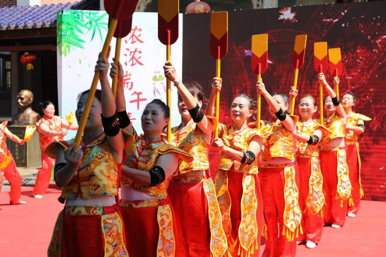 端午臨近,當(dāng)天,活動現(xiàn)場還舉行了包粽子、旱地劃龍舟比賽等活動,現(xiàn)場節(jié)日氛圍濃厚。