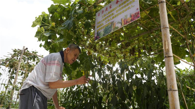 近日上午,記者來到了東鳳鎮(zhèn)敬老院。4樓的天臺活動區(qū)一片綠意盎然,豆角、瓜果等植物蔓藤沿著棚架生長長勢喜人。