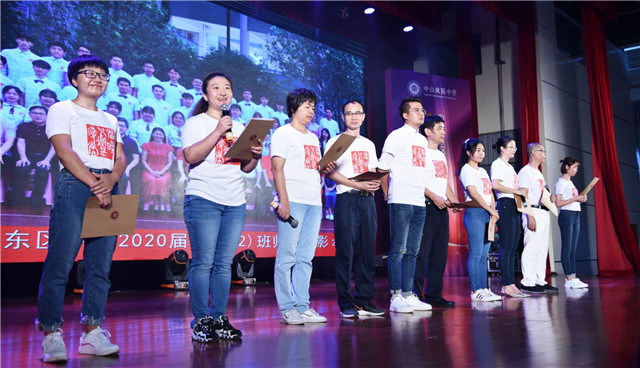 典禮伊始,全體師生、家長觀看了校園飛夢電視臺為畢業(yè)禮制作的視頻,該校高三年級10個班級的班主任老師代表一起上臺,一一講述了自己的帶班經(jīng)歷和育人心得體會,細(xì)數(shù)和學(xué)生們相處的點點滴滴。畢業(yè)典禮還設(shè)置“向守護我們成長的人致敬”環(huán)節(jié),邀請食堂工作人員、宿管阿姨、清潔人員等走上講臺,接受學(xué)生獻花。