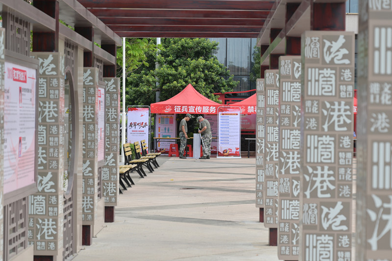 當天除了召開培訓會、派發(fā)創(chuàng)文宣傳單等,港口鎮(zhèn)還舉行了創(chuàng)意集市創(chuàng)文宣傳活動。記者在現(xiàn)場看到,下午5點多時,港口鎮(zhèn)文體服務中心廣場已經(jīng)展出10多個創(chuàng)意集市,包含征兵宣傳服務、禁毒宣傳、文明宣傳、垃圾分類宣傳、創(chuàng)文滿意度調查等。