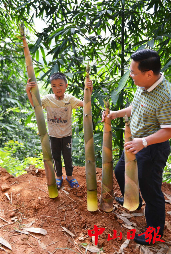 被喻為中國竹子之鄉(xiāng)的廣寧,處處是竹林,洲仔社區(qū)的24500畝山林也多是竹林。竹筍加工是許多竹子產(chǎn)地的招牌農(nóng)副產(chǎn)品,但在洲仔這里卻行不通?!斑@些都是普通竹子,竹筍纖維多不好吃,當(dāng)?shù)厝俗约憾己苌俪浴=^大部分竹子只能作為建筑搭棚材料,運(yùn)輸麻煩且效益低?!倍徘笄湔f,剛到洲仔的中山扶貧隊(duì)就一遍又一遍地敲著這些竹竿苦苦思索。經(jīng)考察外地的竹筍加工廠和多番比較后,中山扶貧隊(duì)漸漸鎖定了“麻竹”。麻竹易種植,而且竹筍個頭大、纖維少,口感好。麻竹的竹筍有多大?記者采訪當(dāng)天,曾跟著農(nóng)戶上山砍竹筍。上山前以為要低著頭在山林間仔細(xì)尋找,上山后才發(fā)現(xiàn)大的麻竹筍能有一米多高,一眼就能看到。這竹筍砍下來有近十斤,剝?nèi)スS殼后余下也有四五斤,果然是豐產(chǎn)肉多的好品種。