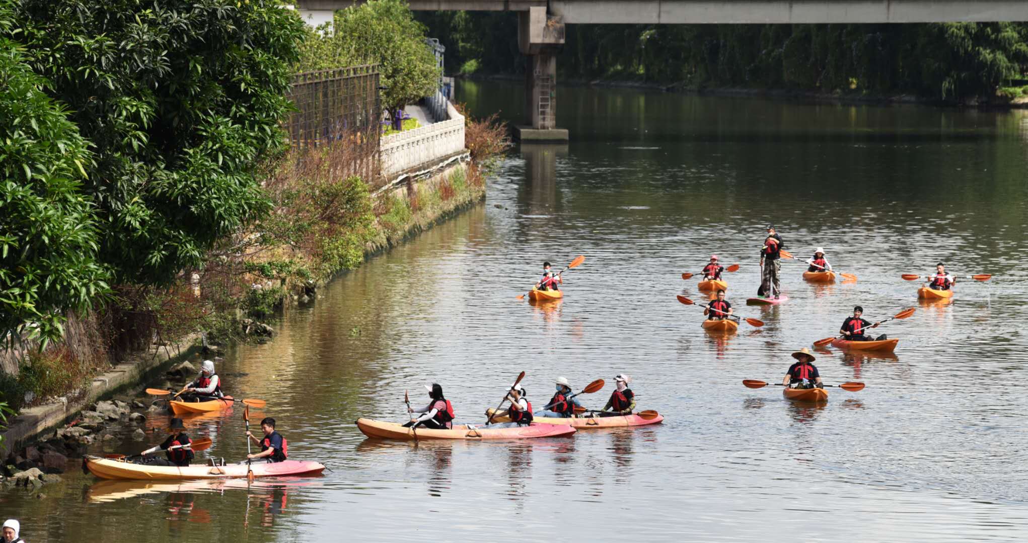 在活動現(xiàn)場,皮劃艇專業(yè)老師首先為志愿者們講解巡河理論知識、乘坐皮劃艇的技能訓(xùn)練以及應(yīng)急救援知識,而在普及相關(guān)知識和注意事項后,“河小青”們穿好救生衣,拿起打撈裝備,井然有序下船,在河道間開展巡河護(hù)河活動。只見他們相互配合,聯(lián)合作戰(zhàn),共同打撈清理河道岸邊漂浮物、垃圾……