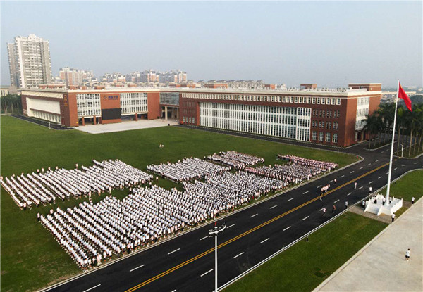 9月1日7時30分,位于三角鎮(zhèn)內(nèi)的迪茵公學(xué)校園內(nèi),三千余名師生整齊列隊升國旗。五星紅旗在國歌聲中冉冉升起,標(biāo)志著這所全新的學(xué)校正式起航。